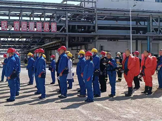 定期邀請邀請職業(yè)衛(wèi)生專家講解《職業(yè)病防治法》等相關(guān)法律法規(guī),同時組織專家與參加培訓(xùn)人員進行交流座談,逐一解答參訓(xùn)人員提出的問題?,F(xiàn)場培訓(xùn)結(jié)束后,公司組織全體員工通過線上學(xué)習(xí)平臺“酷學(xué)院”對講座內(nèi)容進行學(xué)習(xí),組織開展全員職業(yè)健康知識考試,進一步增強全員職業(yè)病防治法律意識和職業(yè)健康知識,提高職工自我防護意識。2022年上半年組織開展液氯泄漏中毒事故、窒息事故、疫情防控等專項應(yīng)急演練,通過開展應(yīng)急演練使員工熟練掌握應(yīng)急處置流程、應(yīng)急防護器材和緊急救護方法,不斷提高崗位人員應(yīng)急處置技能。